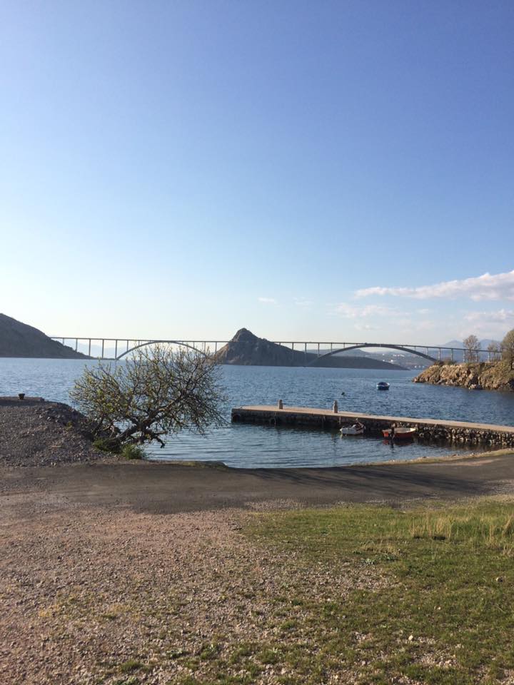 Voz bay, with its magnificent and unique view on the Krk Bridge, in ancient times was a small but safe commercial harbor. Here in year 49 BC took place a famous battle between Caesar and Pompey. Before Krk bridge was built, a ferry was connecting the mainland and the island of Krk here in Voz. The remainings of the ferry port are still visible